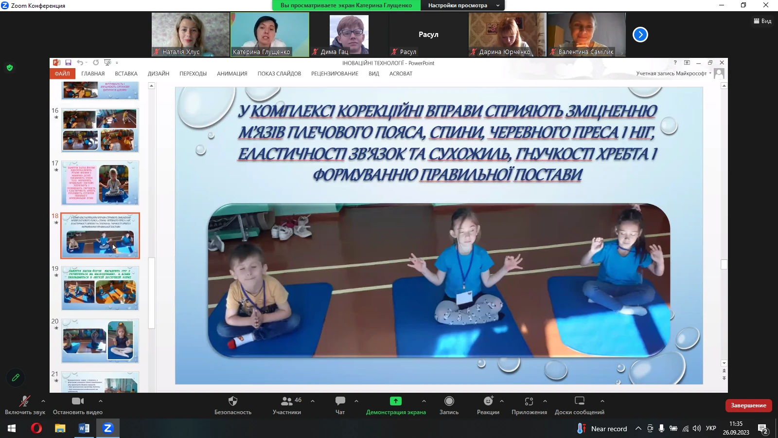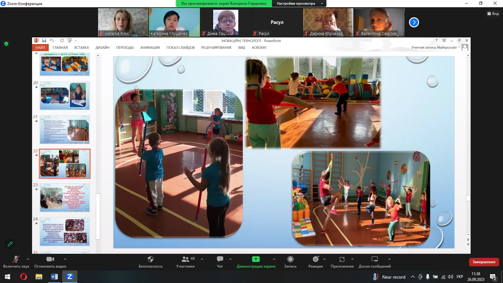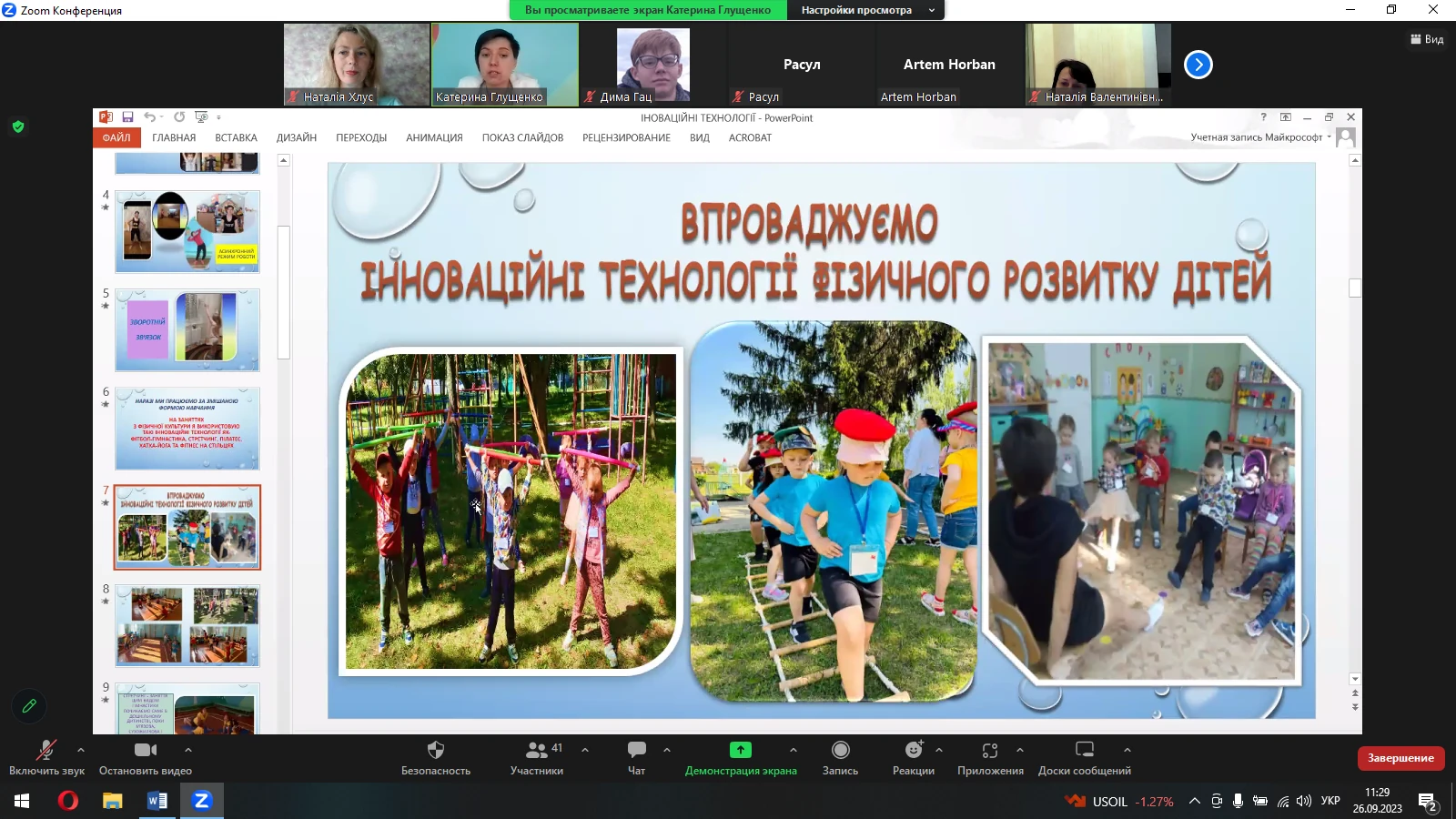 26.09.2023 року на факультеті дошкільної освіти відбулася гостьова лекція інструктора з фізичної культури Косівщинського закладу дошкільної освіти (ясла-садок) «Золота рибка» Степанівської селищної ради Сумського району Сумської області Глущенко Катерини Володимирівни на тему «Використання інноваційних технологій на занятті з фізичної культури».