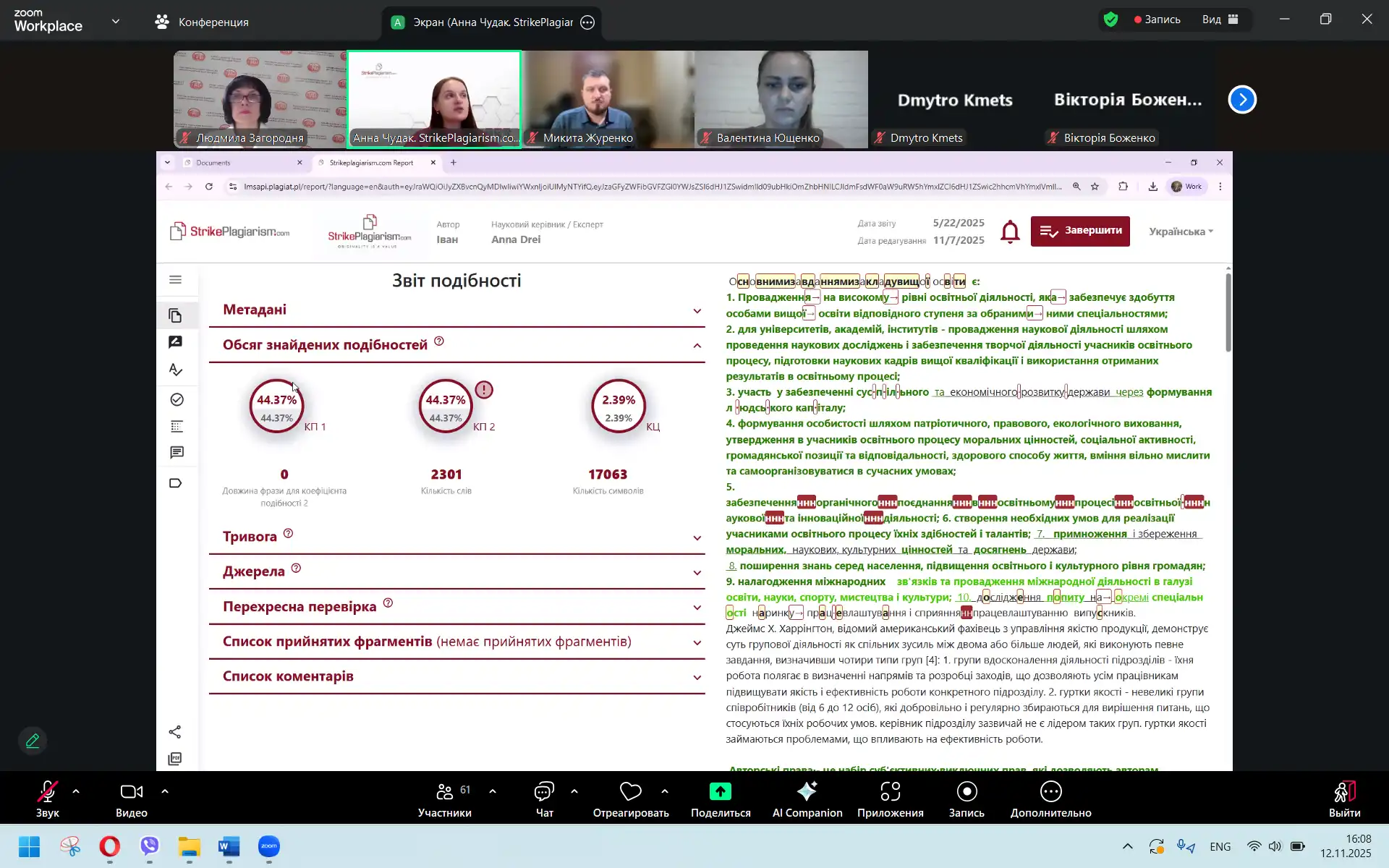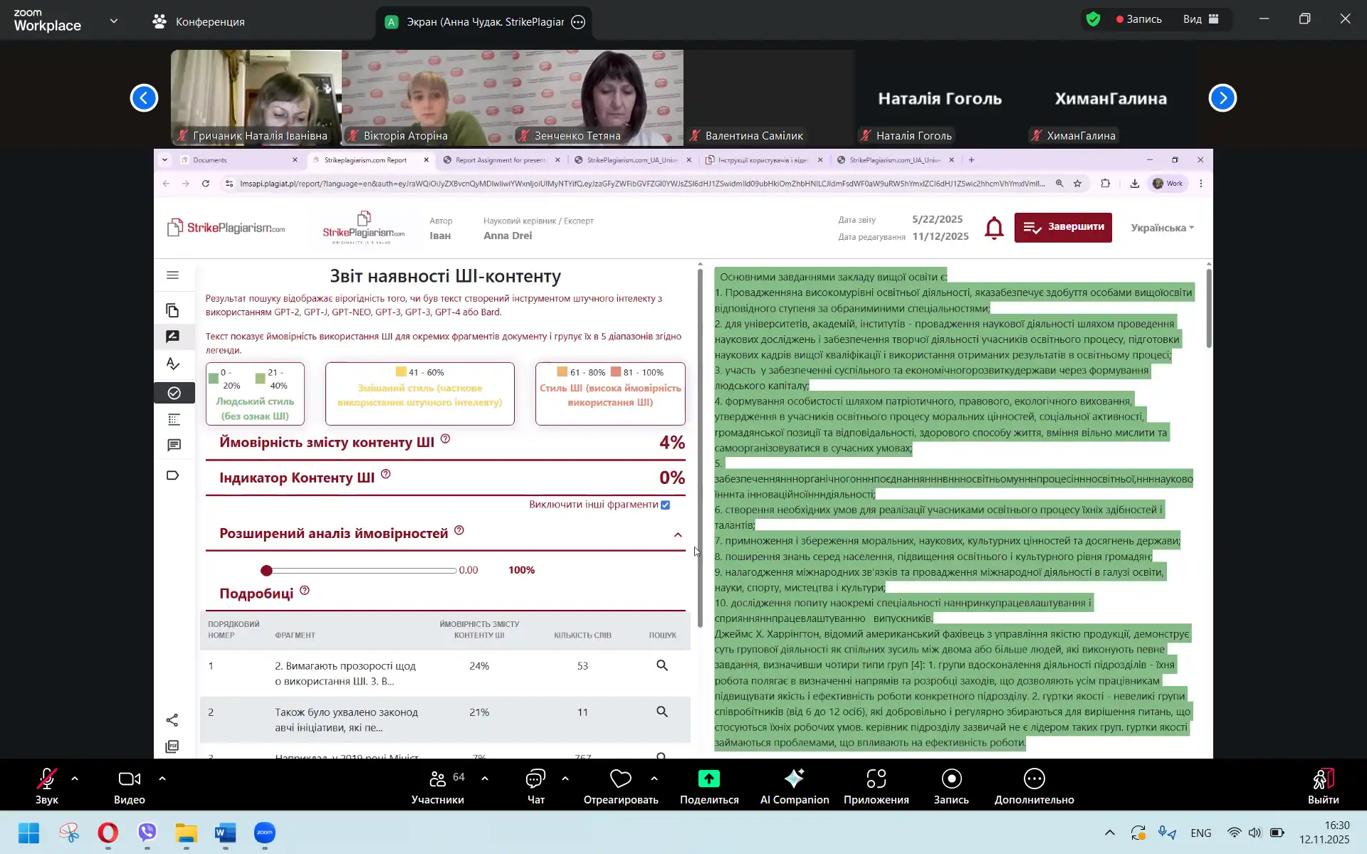 12 листопада викладачі, які забезпечують підготовку здобувачів вищої освіти зі спеціальності 012 Дошкільна освіта, аспіранти взяли участь у воркшопі із менеджеркою з розвитку StrikePlagiarism в Україні Анною Чудак. Означений захід був організований бібліотекою Глухівського національного педагогічного університету імені Олександра Довженка. Під час воркшопу було розглянуто особливості процедури перевірки кваліфікаційних робіт, дисертацій, публікацій на наявність текстових запозичень, традиційні форми академічних порушень та показано, як вони набувають нових масштабів і форм завдяки генеративному штучному інтелекту.