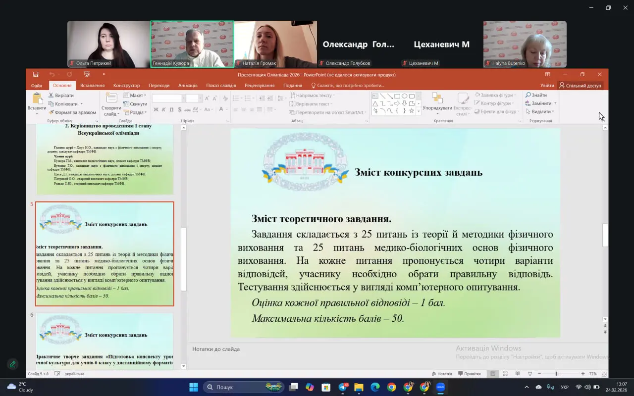 🔹 Другий тур передбачав виконання практичного завдання «Підготовка конспекту уроку з фізичної культури у дистанційному форматі», що дозволило учасникам продемонструвати рівень сформованості професійних компетентностей, методичну грамотність та вміння працювати в сучасних освітніх умовах.